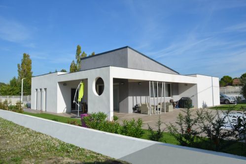 La sobriété des couleurs ainsi que la simplicité des volumes produisent l’effet d’une construction contemporaine.