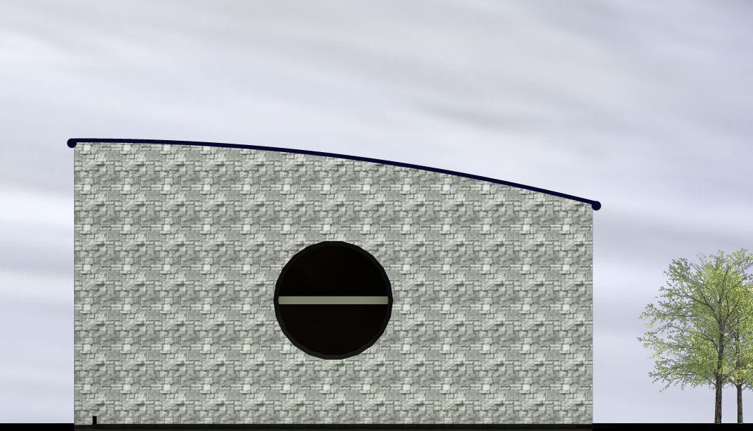 Les façades Est et Ouest sont composées de murs maçonnés habillés de pierres appareillées, ce qui confère à ces deux éléments une grande force visuelle, ils permettent de tenir et d’arrêter la succession des modules. Ils permettent de marier deux styles architecturaux différents (architecture de pierre traditionnelle et architecture contemporaine). Ces deux murs de façades, percés de baies circulaires, viennent souligner la ligne courbe de la toiture.