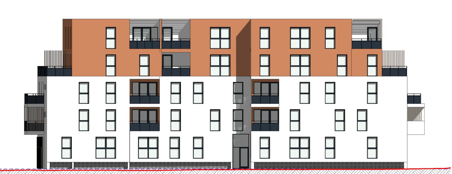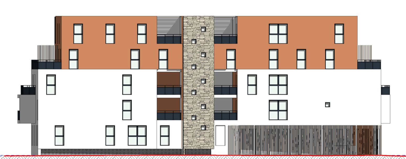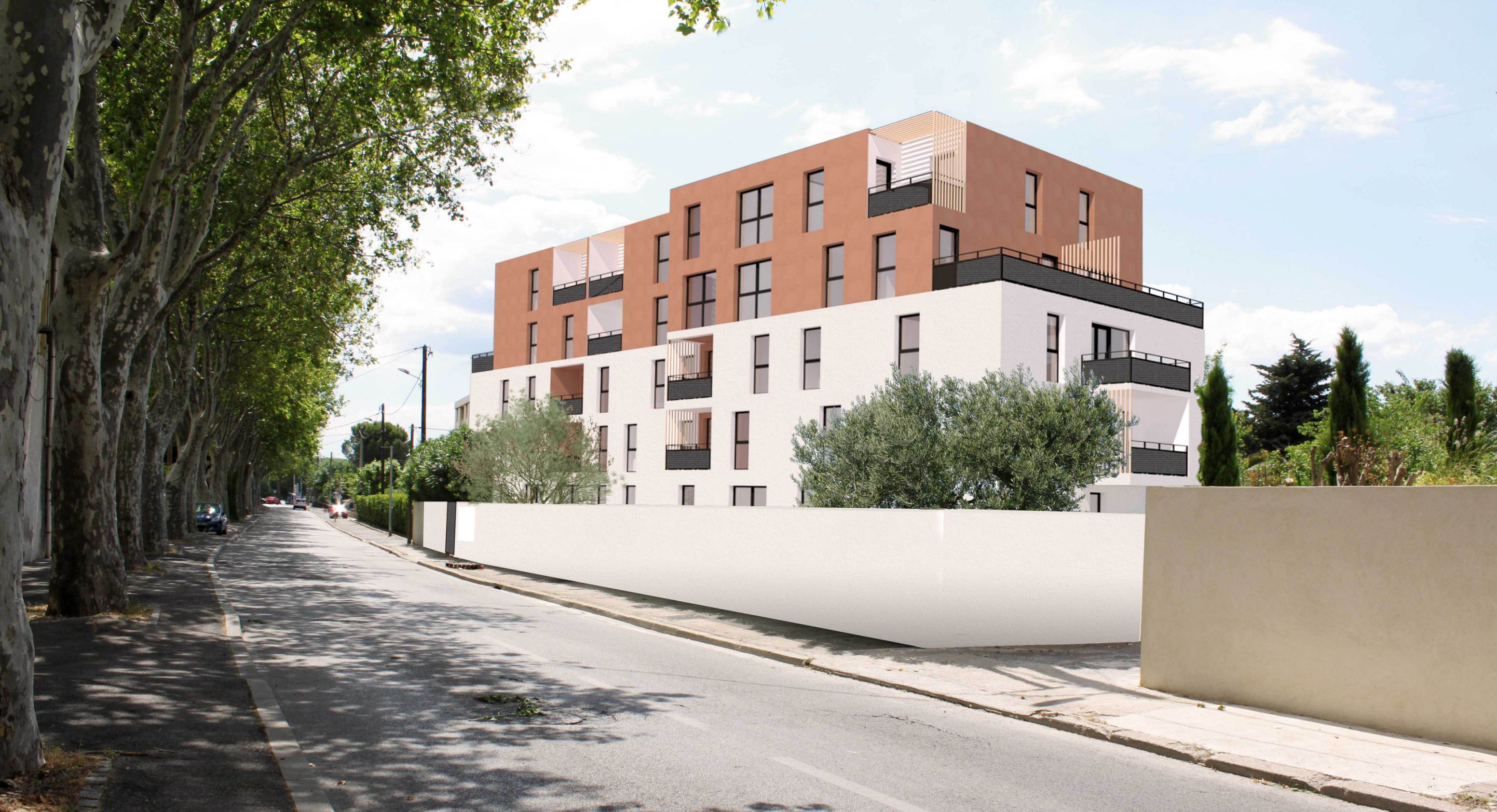 Le projet est rythmé par sa façade créée grâce à un jeu de couleurs des étages supérieurs en retrait qui se répercute dans les balcons. Les pleins et les vides générés par les terrasses sculptent le bâtiment et lui confèrent un dynamisme de façade.