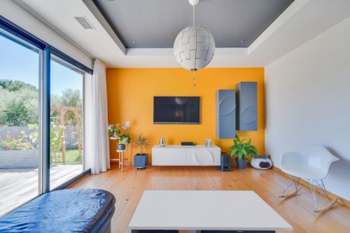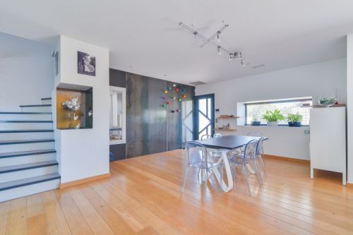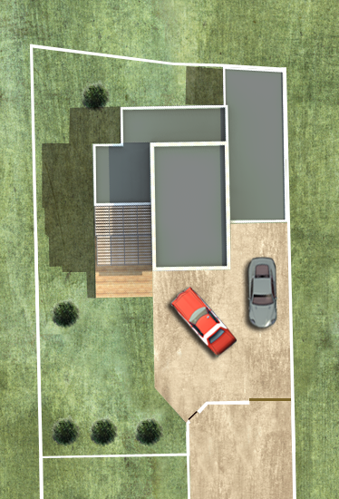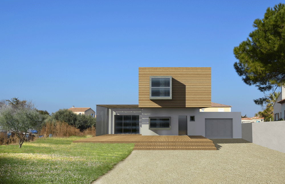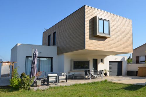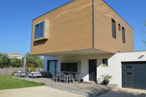 La villa se démarque par une confrontation entre le rez-de-chaussée et l’étage. Une dualité exprimée en premier lieu par ces deux volumes qui prennent des différentes directions.