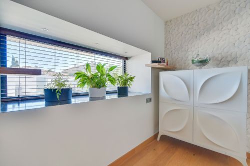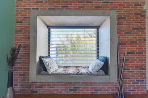 Certaines menuiseries font l’objet d’une attention particulière. Il s’agit des «bow-window». Ces éléments caractérisent des châssis en excroissance par rapport à la façade et sont positionnés de façon stratégique. La hauteur varie selon la vue sur l’extérieur que l’on veut privilégier ou au contraire la vue sur l’intérieur que l’on veut dissimuler.