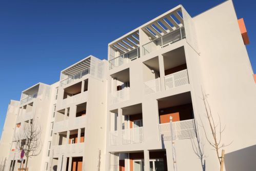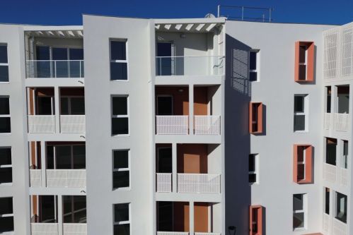 Tous les appartements bénéficient d’une terrasse extérieure sans vis-à-vis grâce aux claustras et dans le prolongement du séjour. Les parties communes sont réduites et conçues pour une gestion peu coûteuse.