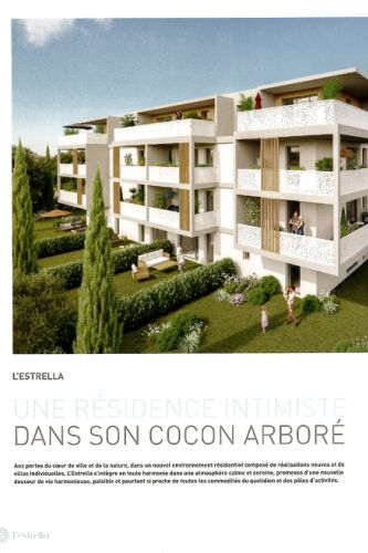 Un jeu d’encadrement lié au profil des balcons est mis en avant par une couleur grise béton. La dualité donnée par le blanc s’affirme sur les étages intermédiaires. La troisième couleur de teinte marron « effet bois » a pour but de casser l’effet de monochromie gris/blanc.