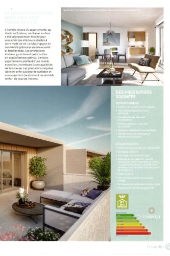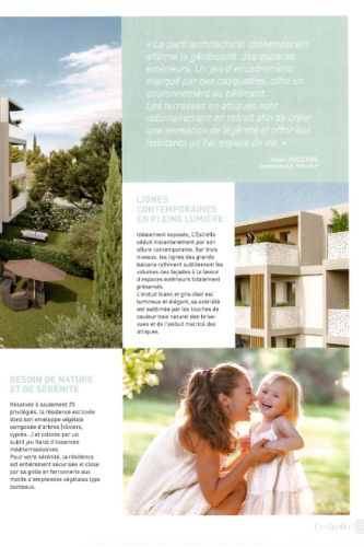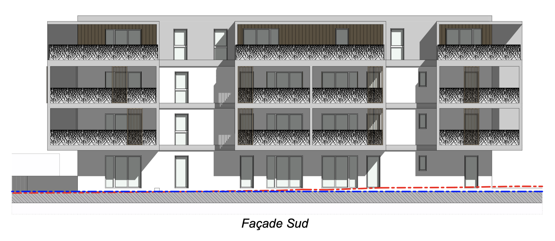 Le parti architectural s’inspire d’une architecture navale. Les balcons commencent au R+1 et s’inscrivent dans une continuité structurelle en R+2. Ils sont volontairement différents au R+3 afin de créer une sensation de légèreté dans leur verticalité et d’offrir aux habitants un bel espace de vie avec des terrasses généreuses. Leur fin est marquée par des casquettes qui offrent un couronnement au bâtiment. Les balcons sont liés au reste du bâtiment par ses bandeaux qui créent une continuité sur les façades.