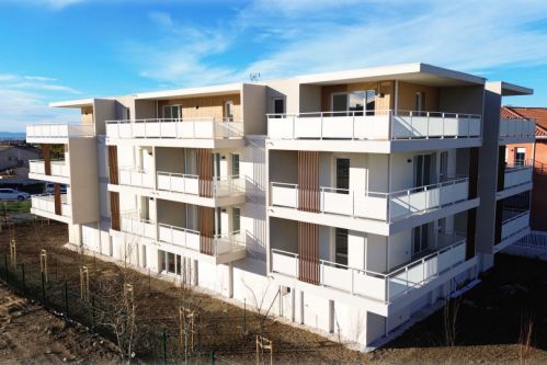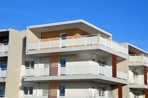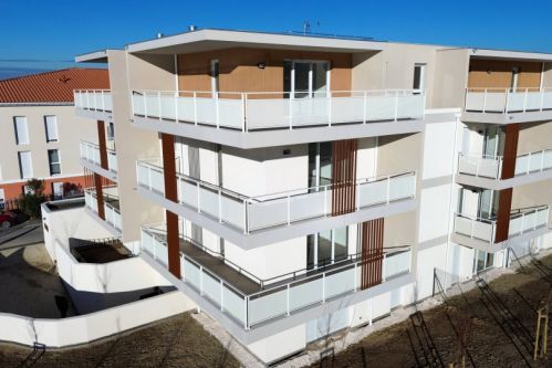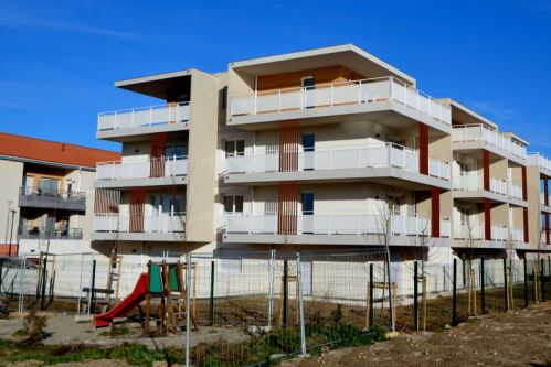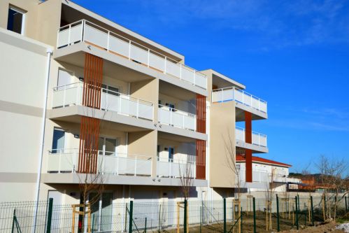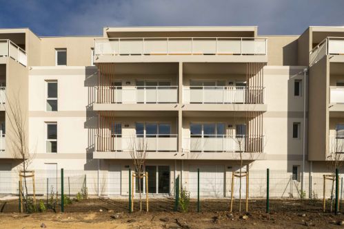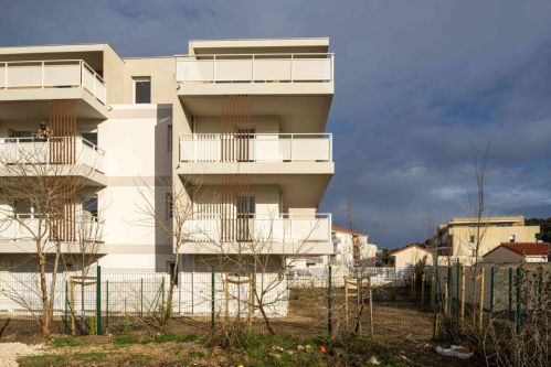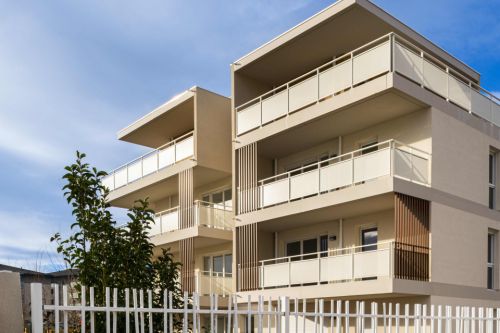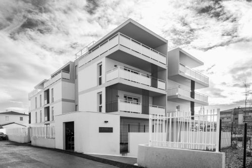 Les éléments de serrurerie choisis sont là pour donner vie au bâtiment. En effet, l’aspect aléatoire des perforations de tôles laquées donne un rythme dynamique aux façades. Quelques brises-vue verticaux sont là pour compléter l’originalité des balcons et atténuer l’effet horizontal. Ils permettent aussi d’éviter les vis-à-vis entre balcons et d’assurer une plus grande intimité.