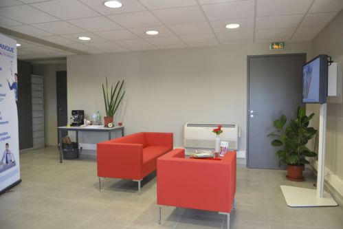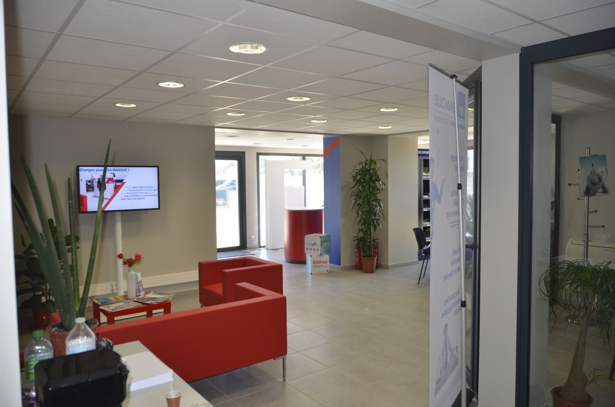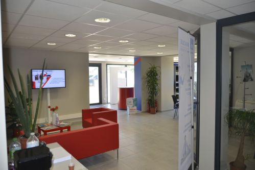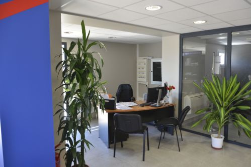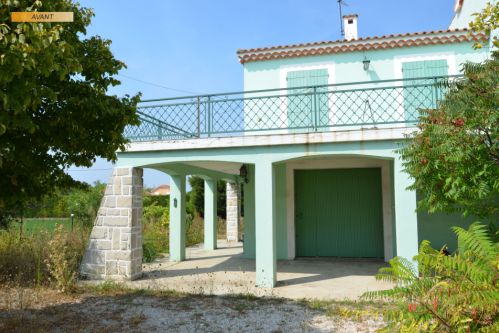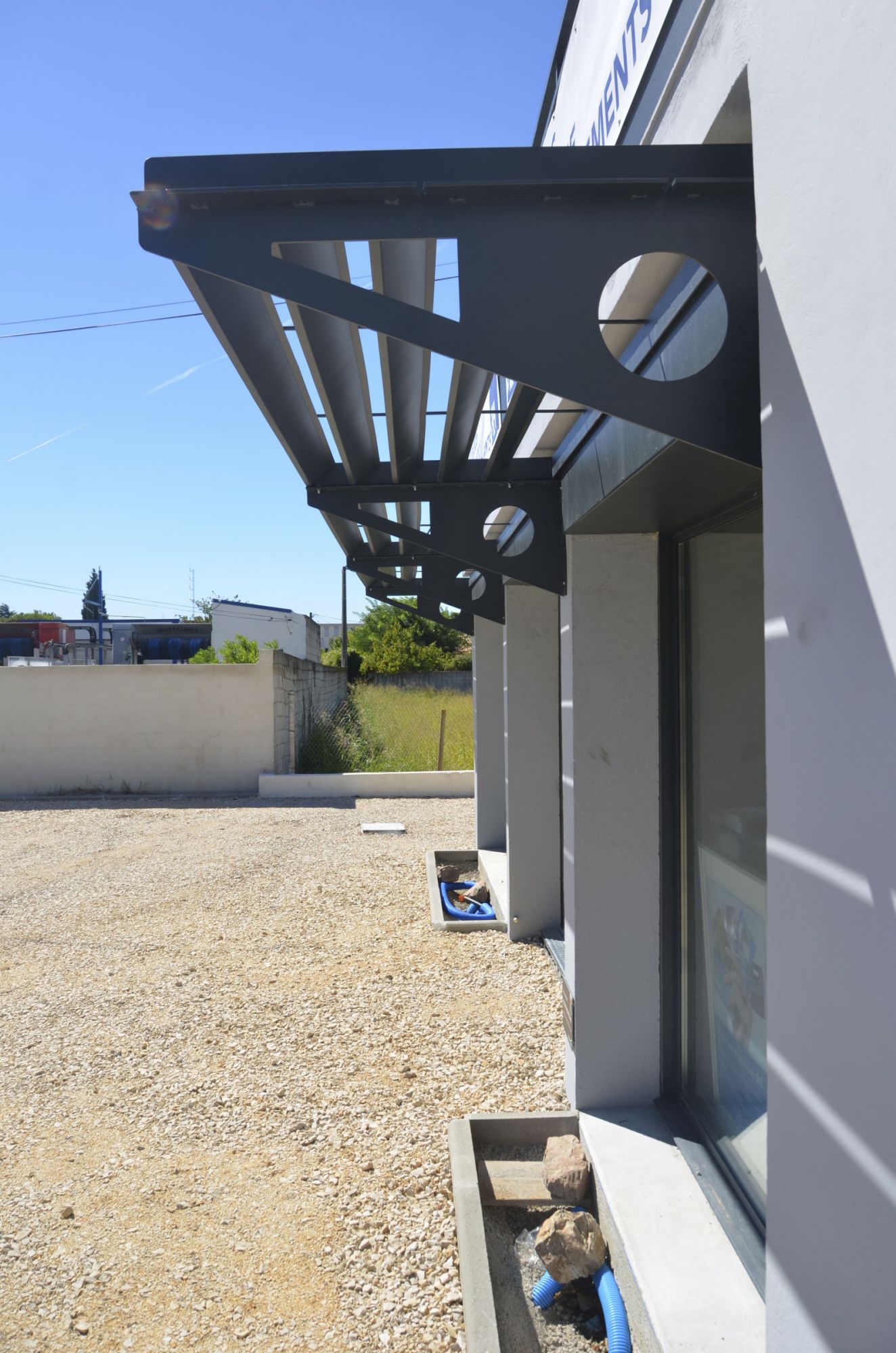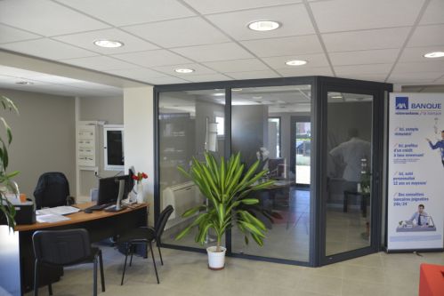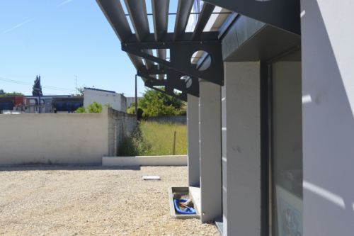 L'actuel porche situé en partie sous la terrasse de l'habitation est récupéré au profit de l'agence d’assurance. Les vides des arcades seront comblés par des châssis vitrés. La volonté du maitre d'ouvrage est de faire une agence assez lumineuse et transparente depuis l’extérieur.