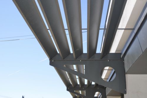Une protection solaire est mis en avant au sud et à l'ouest par la création d'un brise-soleil en métal.