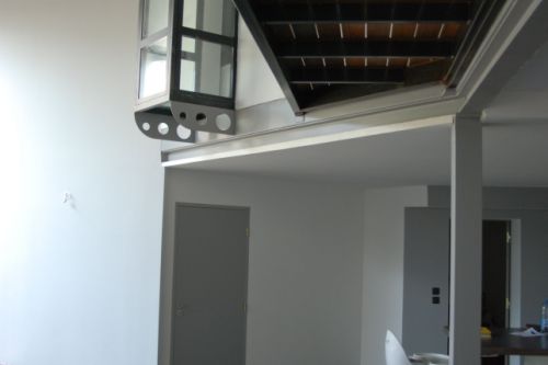 Un cheminement paysager constitué de petites volées d’escaliers et de jardinières en quinconce permet un accès direct à la zone chambre de l’étage depuis l’arrivée sur la propriété. Ceci permet aux enfants de vivre le foyer familial avec une relative autonomie.