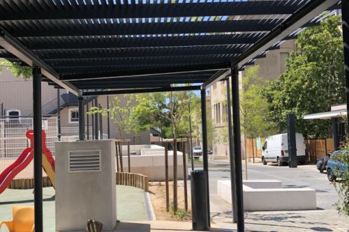 - un espace jeux d’eau pour se rafraichir l’été / ombrière.,