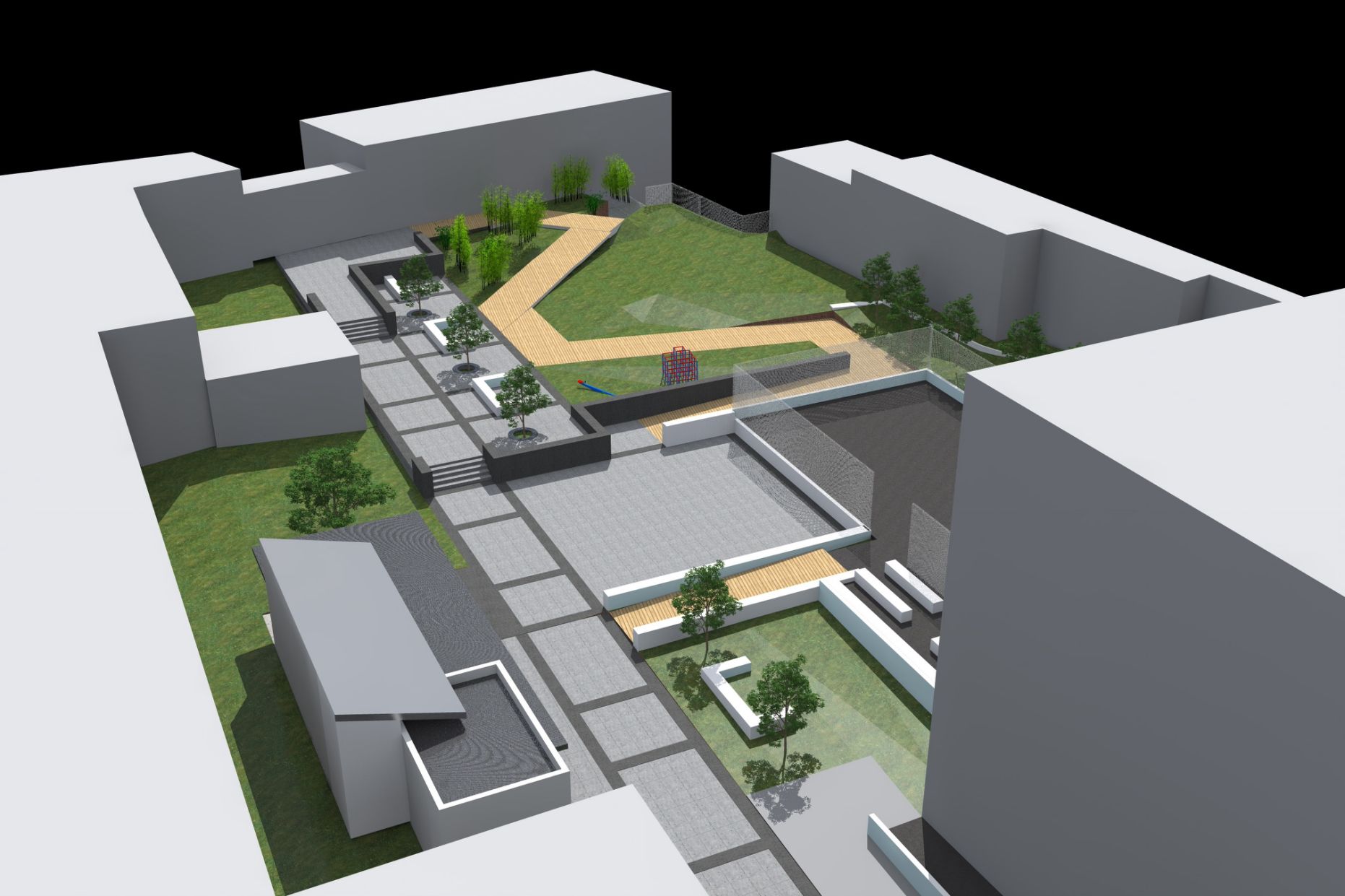 - des mobiliers urbains sont disposés dans tous les espaces,