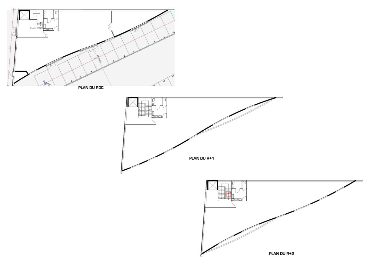 La forme triangulaire du bâtiment accentue l’effet de perspective et permet d’attirer le regard vers ses grandes façades rythmées par les pleins et les vides, mettant en scène les activités intérieures.