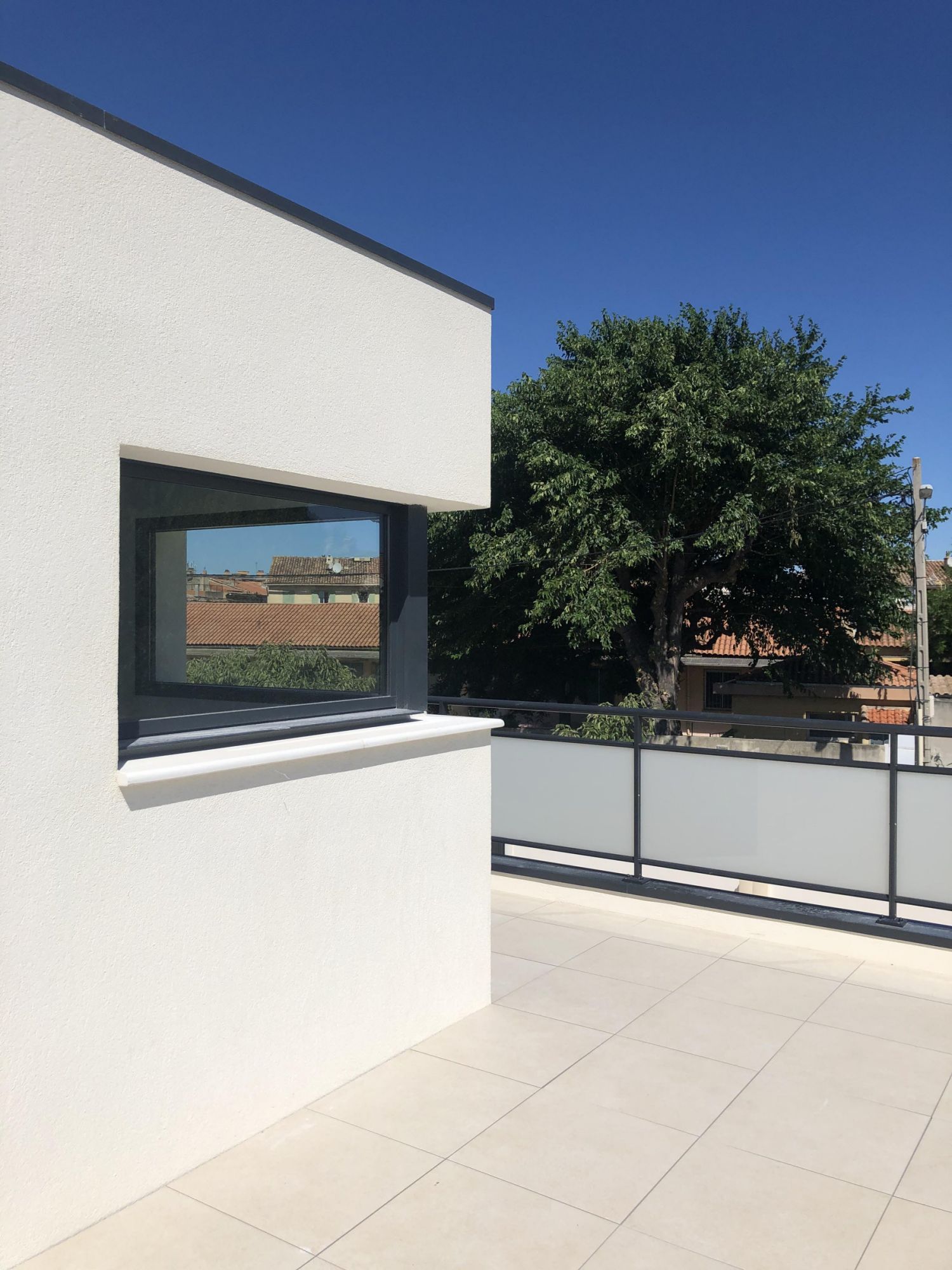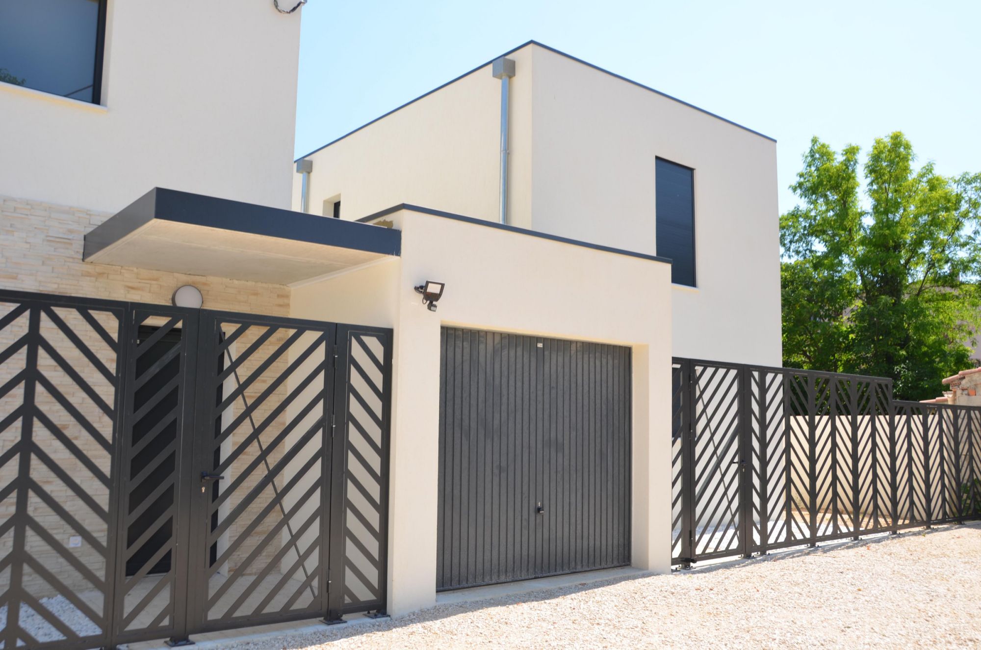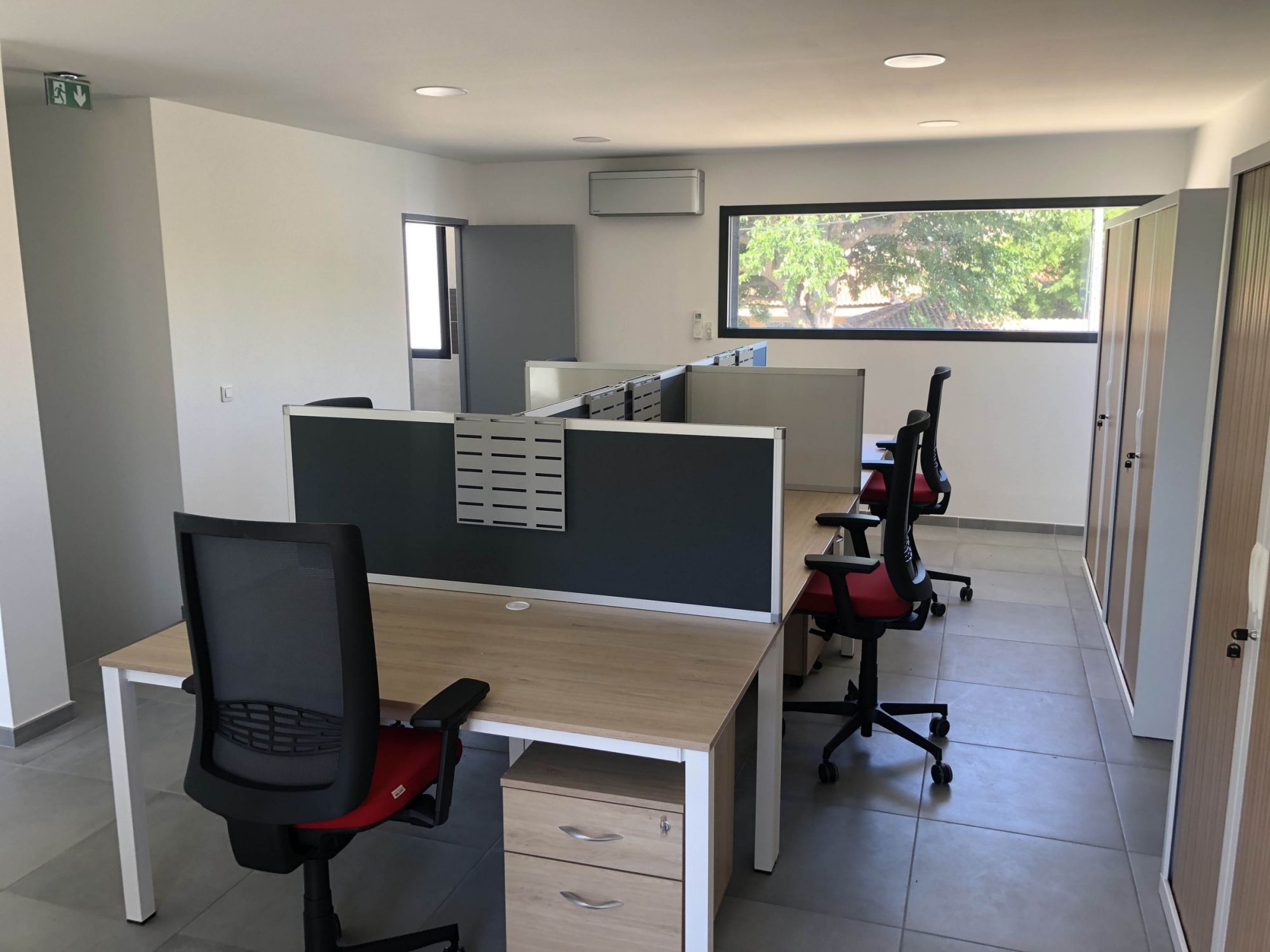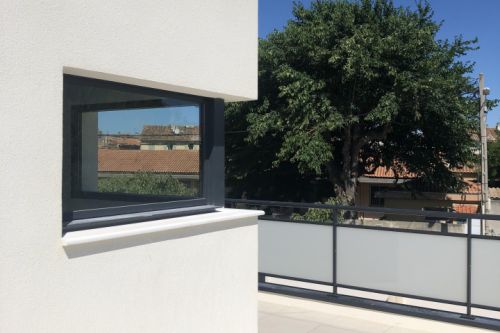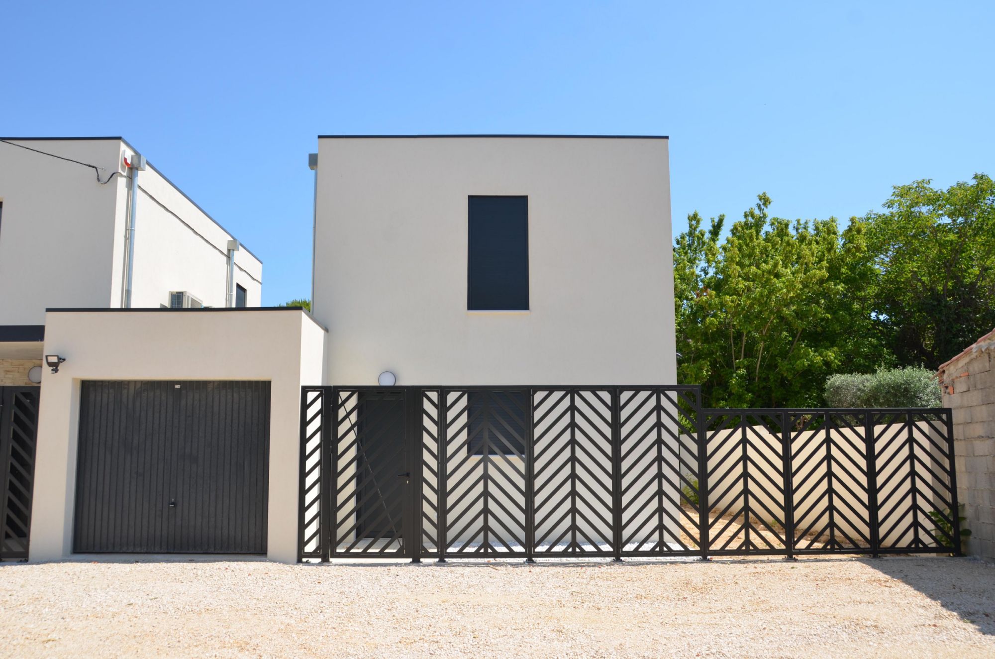 Le projet traite de la création d’un bureau de géomètre et d’un T3 locatif tous les deux en R+1 sur un terrain quasiment plat. Le futur ensemble construit s’organise en retrait par rapport à la limite nord de la parcelle dans le but de laisser un espace de parking pour la future activité. Un jeu de retrait est créé entre les garages et le bureau et le logement afin de protéger l’espace habité de l’espace de parking. Un claustra métallique en façade nord vient compléter ce jeu de protection. Au sud, le logement sera pourvu d’une terrasse surmontée d’une pergola pour créer un confort d’été. De même pour la partie des bureaux. Les retraits des parties de vie permettent la création de petits patios ou sas d’entrée permettant de protéger la construction de la zone parking.
